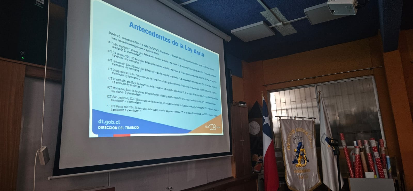 El día miércoles 18 de junio de 2025, se realizó la capacitación anual, para todos los profesores, profesoras, asistentes de la educación, equipo de gestión y equipo directivo del Instituto Andrés Bello, sobre la Ley21.643, conocida como Ley Karin, que modifica el Código del Trabajo y otros cuerpos legales para prevenir, investigar y sancionar el acoso laboral, sexual y la violencia en el trabajo. La jornada de capacitación, estuvo a cargo del Coordinador Jurídico Regional de la Dirección del Trabajo, Región del Maule don Claudio Vega Aravena y por el equipo de profesionales de la Corporación Educacional Carlos González Cruchaga, abogadas señorita Carmen Flores Núñez y Andrea Stevenson Villar.